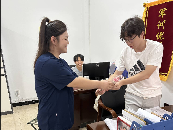9月10日,武昌首义学院嘉鱼教学改革基地的教室里处处洋溢着感恩的氛围。同学们亲手制作了精美的贺卡,一笔一画,写下对老师的感恩与赞美。字里行间,满是对老师的敬爱。一束束娇艳的鲜花,被轻轻送到老师手中,那绽放的花瓣,恰似老师对学生们的爱,热烈而真挚。在课堂上同学们捧着贺卡齐声说道“老师,祝您教师节快乐!”时,真挚的声音漫过教室的窗台,老师们相视一笑,眼中满是欣慰与骄傲。训练场旁的树荫下,更是涌动着别样的温情。刚结束晨训的教官们还未卸下军帽,几个同学便捧着包装精致的鲜花与贺卡快步上前。同学齐声喊出“教官,谢谢您!祝您节日快乐!”时,真挚的声音在训练场上方久久萦绕,平日里严肃的教官们,嘴角也缓缓扬起了温暖的弧度。