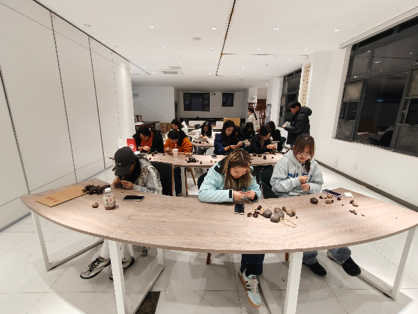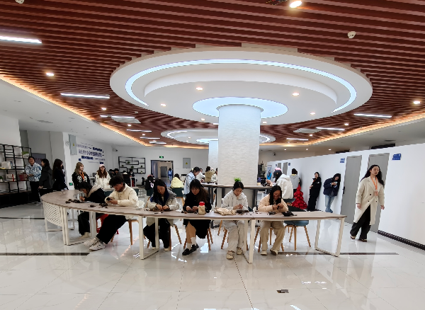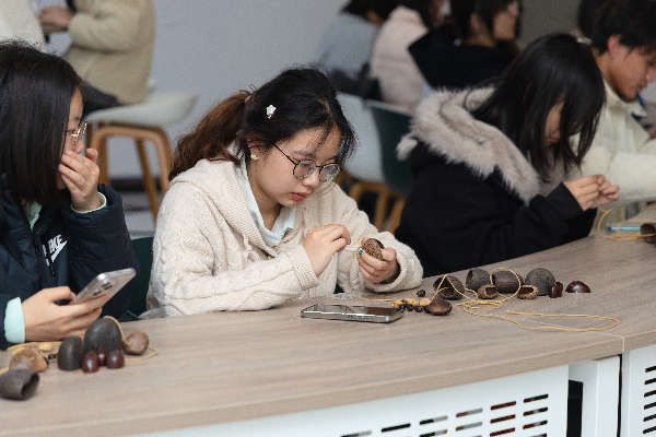 活动现场春意融融,同学们热情高涨,积极参与各项环节。在手工制作环节中,大家分工协作、默契配合,每一个步骤都认真细致,志愿者们分发串珠材料,带领大家制作环保主题手工作品,用实际行动为生活增添一抹新绿,同学们在指尖穿梭中感受自然之美,将对生态的珍视融入创作之中。