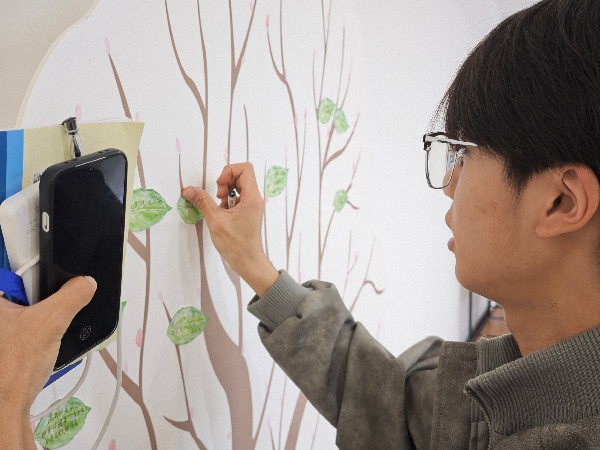 绿植书签制作环节,大家围坐桌前,专注地进行裁剪、粘贴、装饰,将对自然的热爱与对未来的期许融入手工创作之中,在动手实践中感受绿植之美。一枚枚独具匠心的书签,既是春日校园的生动注脚,也是青年学子环保意识的具象表达。