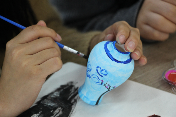 创作接近尾声时,一件件饱含匠心的作品陆续诞生:色彩斑斓的珐琅画、雅致清新的瓷瓶、气韵生动的脸谱、憨态可掬的石膏娃娃,共同构成了一幅青春与非遗交融的画卷。