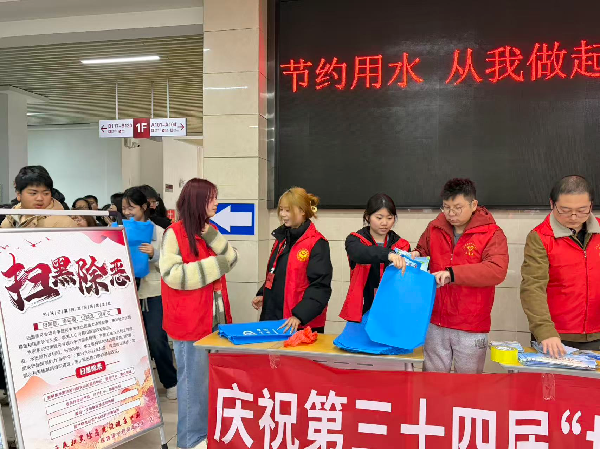 下课铃响后,教学楼门口的宣传展板前逐渐聚拢起驻足观看的师生,志愿者们向过往的师生发放手提袋,让师生在阅读中既能学到方法,也能增强法治观念。许多同学领取后,纷纷表示会将手册带回宿舍与室友分享,让更多人加入节水行列。