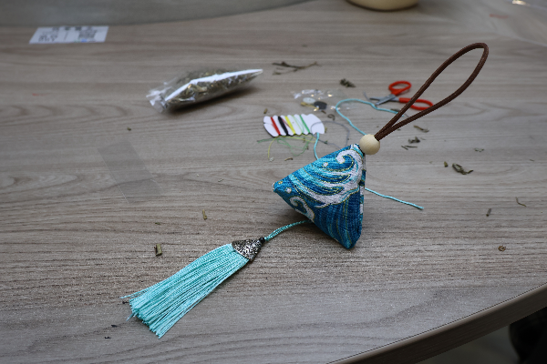 本次活动设置两大体验专区,同步开放、有序开展。在古法香包区,同学们精心挑选布料,认真裁剪、耐心穿针引线,将艾草、薰衣草等天然香料细心填入布袋,再细致缝合、装饰系带。一针一线皆是心意,小小香囊不仅承载着驱蚊祈福的传统寓意,更兼具实用价值与非遗韵味。竹编挂饰区里,大家手持柔韧细竹篾,从基础的横竖交织学起,指尖缠绕、精心勾勒,让原本普通的竹篾在巧手下逐渐蜕变,成为造型精巧、别具一格的挂饰。