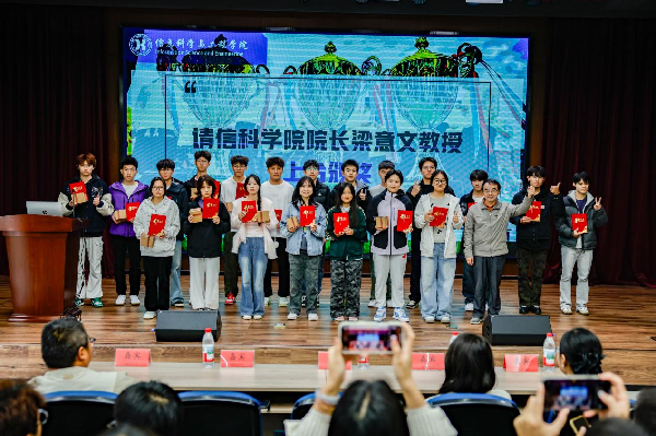 大会在庄重的氛围中拉开帷幕,首先对嘉鱼运动会中表现突出的集体与个人进行了隆重表彰。本次表彰涵盖多个类别,共授予近50名同学“优秀运动员”“优秀志愿者”“优秀学生干部”等荣誉称号,以表彰他们在运动会期间展现出的卓越风采与责任担当。其中,信科院25级学工团队凭借周密的组织策划、高效的统筹协调以及出色的执行能力,荣获“最佳组织奖”,成为现场关注的焦点之一。表彰环节后,辅导员陈梦婷作为代表上台分享。她满怀激情地回顾了运动会期间的诸多感人瞬间,从运动员在赛场上奋力冲刺、挥洒汗水的坚韧,到志愿者默默坚守岗位、贴心服务的奉献,再到学生干部统筹协调、保障赛事顺利推进的担当,一个个鲜活的场景让在场师生深受触动。