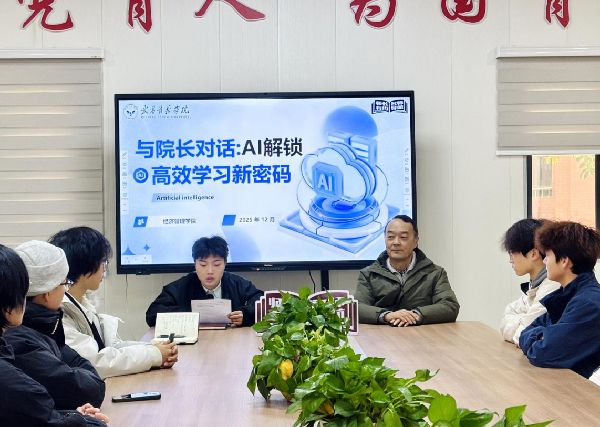 为引导青年学子在 AI 浪潮中善用智能工具、构建高效学习体系,12 月 18 日上午,武昌首义学院经济管理学院在嘉鱼教学改革基地一站式社区 101 成功举办 “与院长对话:AI 解锁高效学习新密码” 主题分享会。经济管理学院院长丁士军教授受邀担任主讲人,辅导员王智健老师主持本次分享会,辅导员邱杰老师与大一大二对 AI 技术感兴趣的学生代表深入交流,现场互动频繁、氛围热烈活跃。