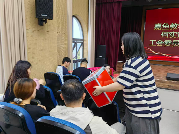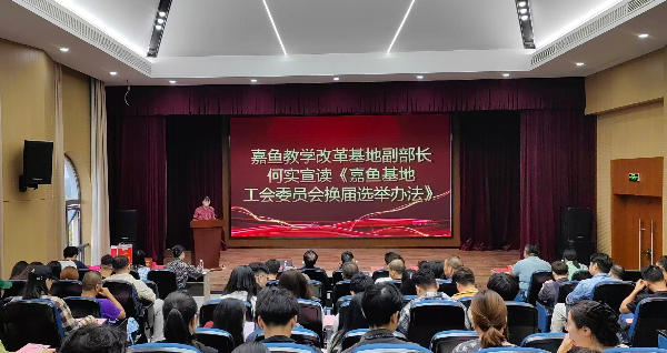 会议第一项议程进行嘉鱼教学改革基地分工会委员会换届选举,由嘉鱼教学改革基地副部长何实主持并宣读《嘉鱼基地工会委员会换届选举办法》,明确“公开、公平、公正”原则及流程规范。全体教职工有序完成投票,最终何实当选为本届工会委员会主席、方艺琛等6名同志当选为工会委员会委员,为工会工作注入新活力。