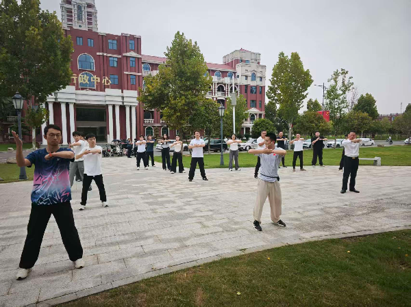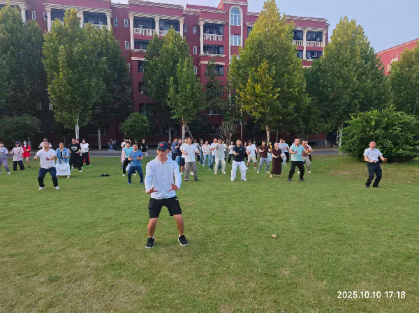 邹星庐副校长始终以身作则带头参与,每天下午五点准时出现在名人广场,与教职工们一同列队习练。他认真跟随老师讲解打磨每一个招式细节,遇难点主动请教交流,谦逊好学的态度极大激发了大家的学习热情。如今,名人广场的太极队伍日渐壮大,整齐划一的动作、专注投入的神情,成为基地充满生机的人文景观。