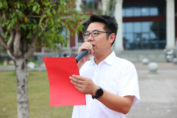 学工部部长汪晓航、嘉鱼基地工作部党总支副书记张冬分别带领现场师生宣誓。师生们高举右拳,郑重承诺:秉承“学以广才、志以成学”的校训,用科学知识武装头脑,凭坚韧毅力奋勇前行,做有担当的时代青年,敢于有梦、勇于追梦,与祖国同进步共发展,为实现中华民族伟大复兴贡献力量。