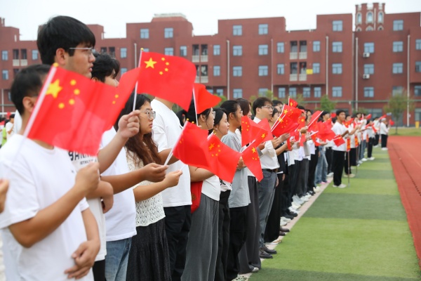 “五星红旗迎风飘扬,胜利歌声多么响亮……”随着熟悉的旋律在校园中回荡,师生们手持五星红旗,和着节拍整齐挥舞,深情合唱《歌唱祖国》,用质朴有力的歌声诠释对祖国母亲最纯真的爱、最炙热的情,共同祝愿伟大祖国繁荣富强。